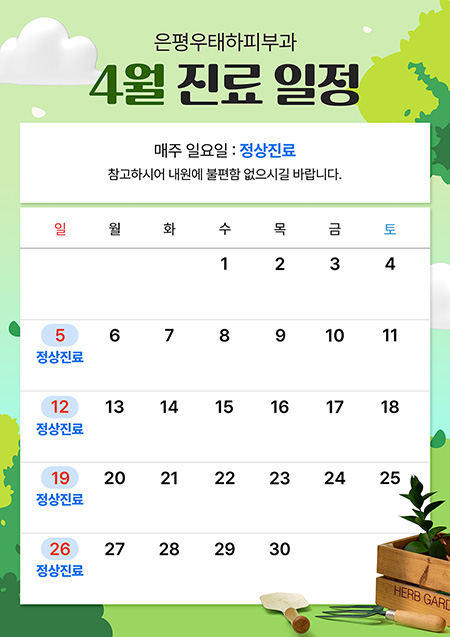 | 일요일 | AM 09 : 00 – PM 01 : 00 |